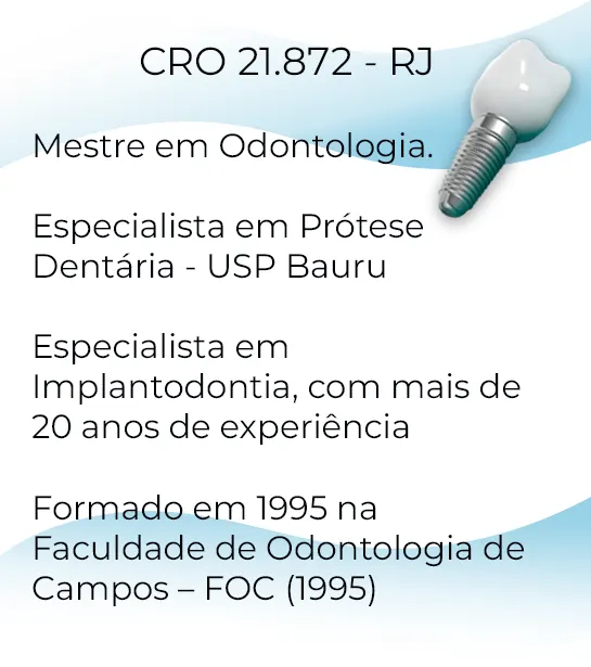 - Especialista em Implantodontia, com mais de 30 anos de experiência,
