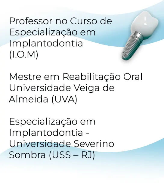 - Professor no Curso de Especialização em Implantodontia – (I.O.M)