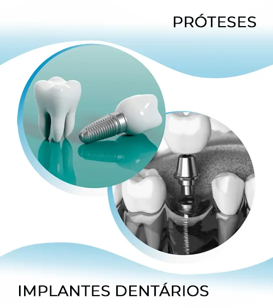 Confecção e colocação de coroas, próteses dentárias fixas, removíveis ou próteses totais realizadas por dentistas especializados.